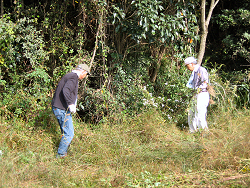 ビオトープの保全区域と未整備区域(下り斜面)との境界が明確になりました。 |