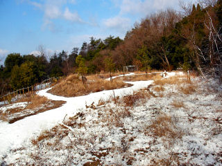 木チップ歩廊沿いに雪が残っています。