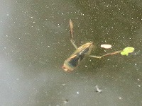 今冬は降水量が多く、2月末には例年通りの満水となりました。暖かい日には、マツモムシが水面で泳いでいます。