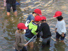 | 川に入る児童たち |